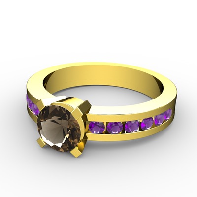 Dumanlı kuvars ve ametist 8 ayar altın yüzük
