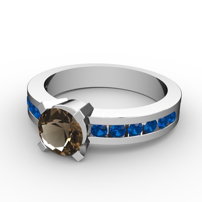 Dumanlı kuvars ve lab safir 925 ayar gümüş yüzük