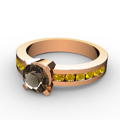 Dumanlı kuvars ve sitrin 8 ayar rose altın yüzük