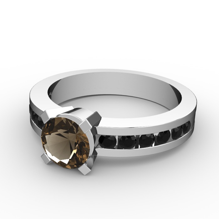 Dumanlı kuvars ve siyah zirkon 18 ayar beyaz altın yüzük