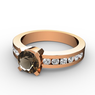 Dumanlı kuvars ve swarovski 8 ayar rose altın yüzük