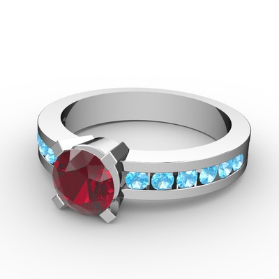 Garnet ve akuamarin 14 ayar beyaz altın yüzük
