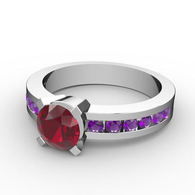 Garnet ve ametist 8 ayar beyaz altın yüzük