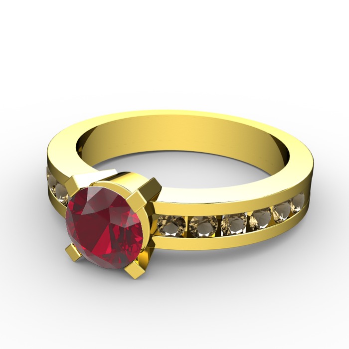Garnet ve dumanlı kuvars 18 ayar altın yüzük