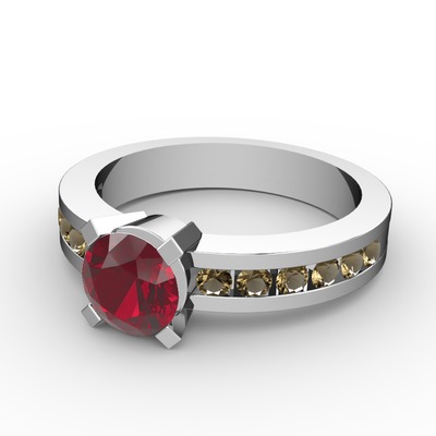 Garnet ve dumanlı kuvars 925 ayar gümüş yüzük