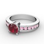 Garnet ve pembe kuvars 14 ayar beyaz altın yüzük