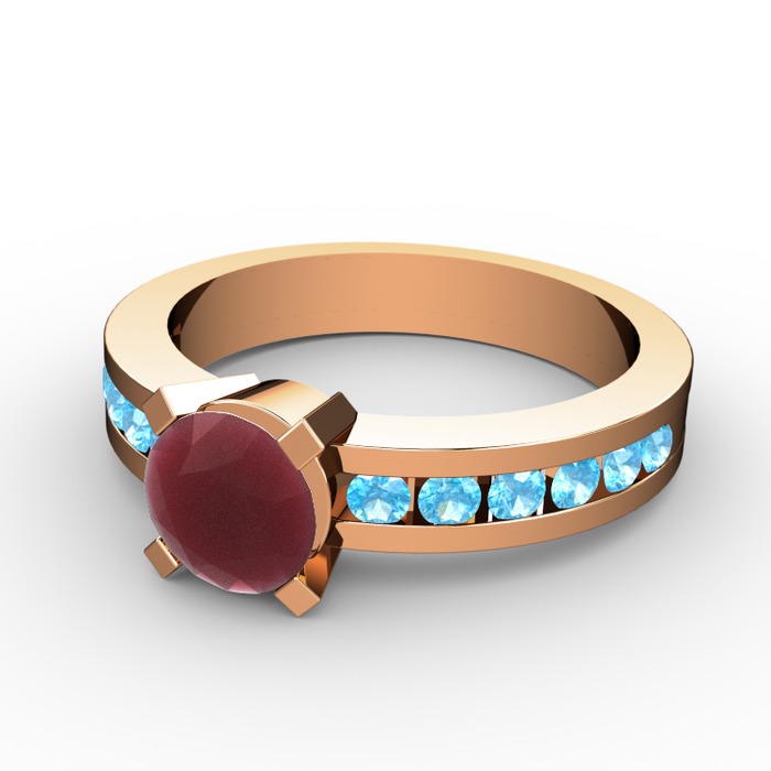 Kök yakut ve akuamarin 925 ayar rose altın kaplama gümüş yüzük