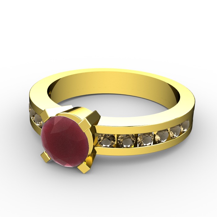 Kök yakut ve dumanlı kuvars 18 ayar altın yüzük