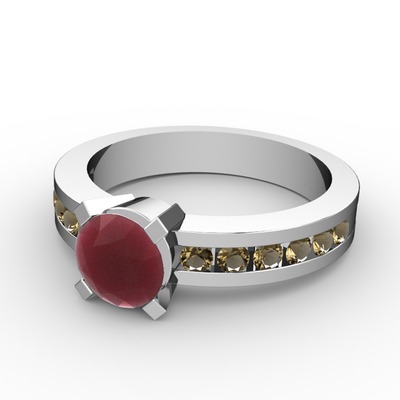 Kök yakut ve dumanlı kuvars 18 ayar beyaz altın yüzük