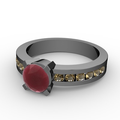 Kök yakut ve dumanlı kuvars 925 ayar siyah rodyum kaplama gümüş yüzük