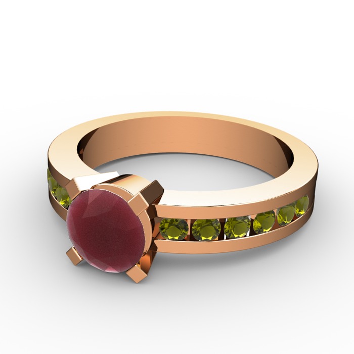 Kök yakut ve peridot 925 ayar rose altın kaplama gümüş yüzük