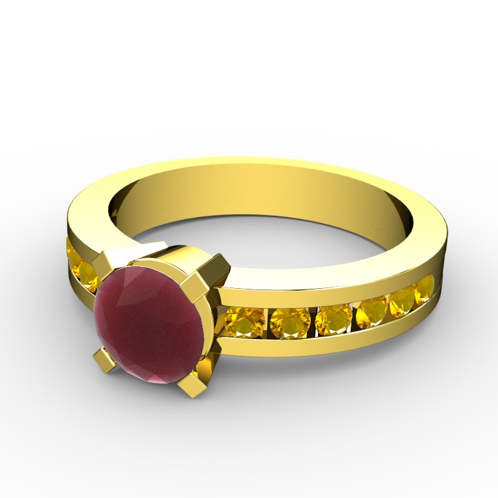Kök yakut ve sitrin 925 ayar altın kaplama gümüş yüzük