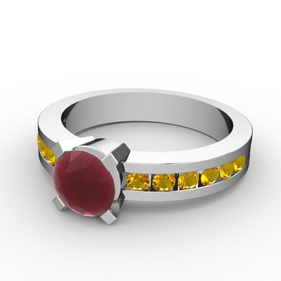Kök yakut ve sitrin 925 ayar gümüş yüzük