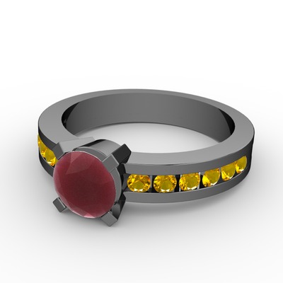 Kök yakut ve sitrin 925 ayar siyah rodyum kaplama gümüş yüzük