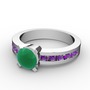 Kök zümrüt ve ametist 18 ayar beyaz altın yüzük