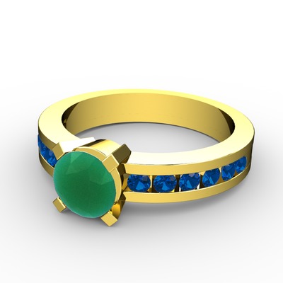 Kök zümrüt ve lab safir 925 ayar altın kaplama gümüş yüzük