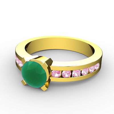 Kök zümrüt ve pembe kuvars 8 ayar altın yüzük
