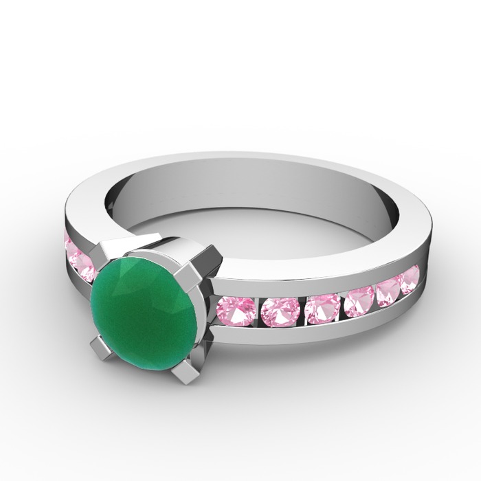 Kök zümrüt ve pembe kuvars 8 ayar beyaz altın yüzük