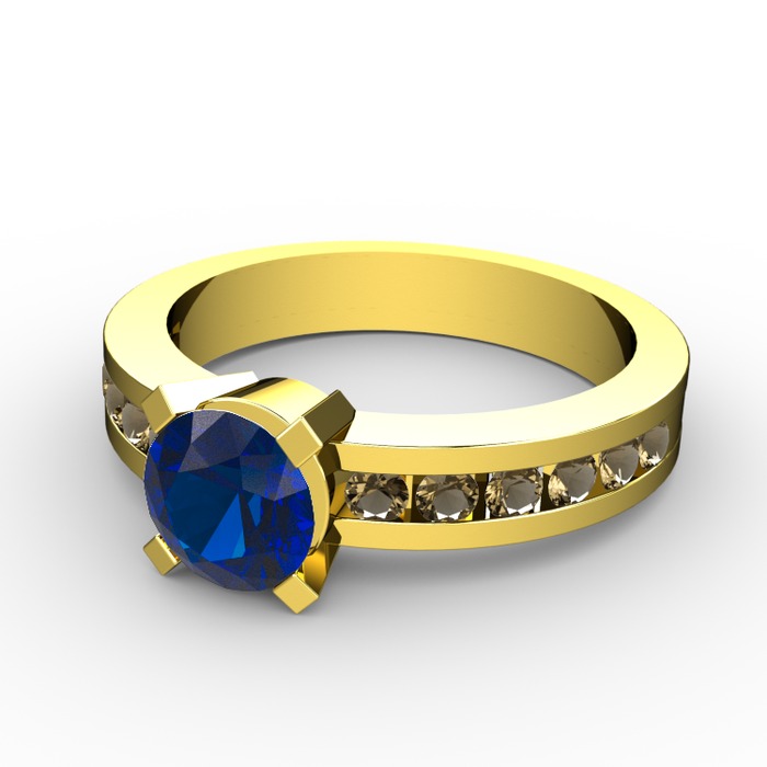 Lab safir ve dumanlı kuvars 18 ayar altın yüzük