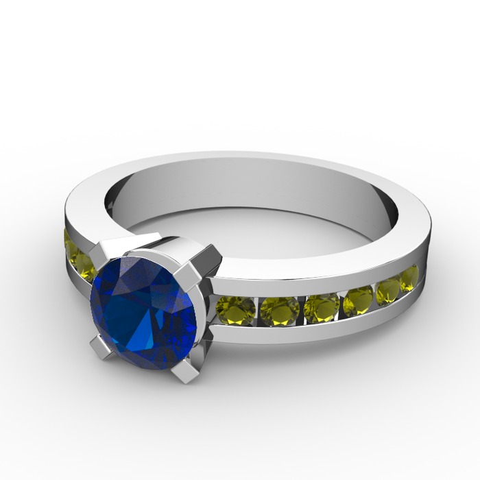 Lab safir ve peridot 18 ayar beyaz altın yüzük