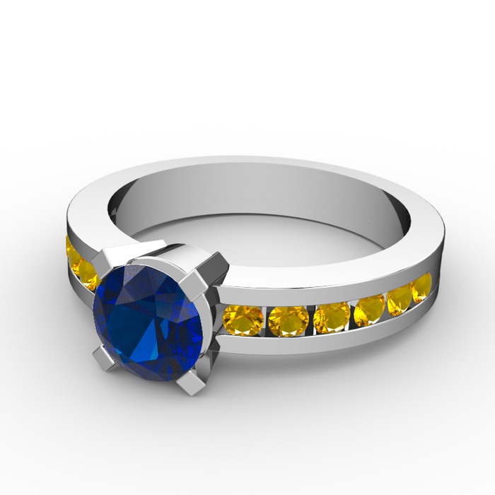 Lab safir ve sitrin 8 ayar beyaz altın yüzük