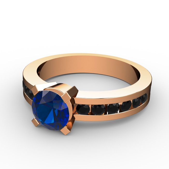 Lab safir ve siyah zirkon 8 ayar rose altın yüzük