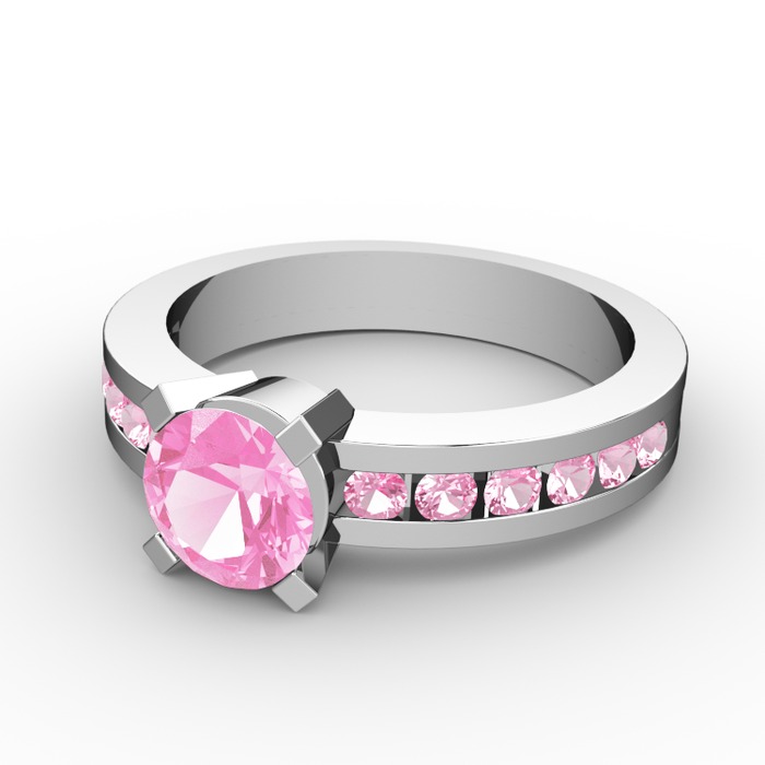 Pembe kuvars 8 ayar beyaz altın yüzük