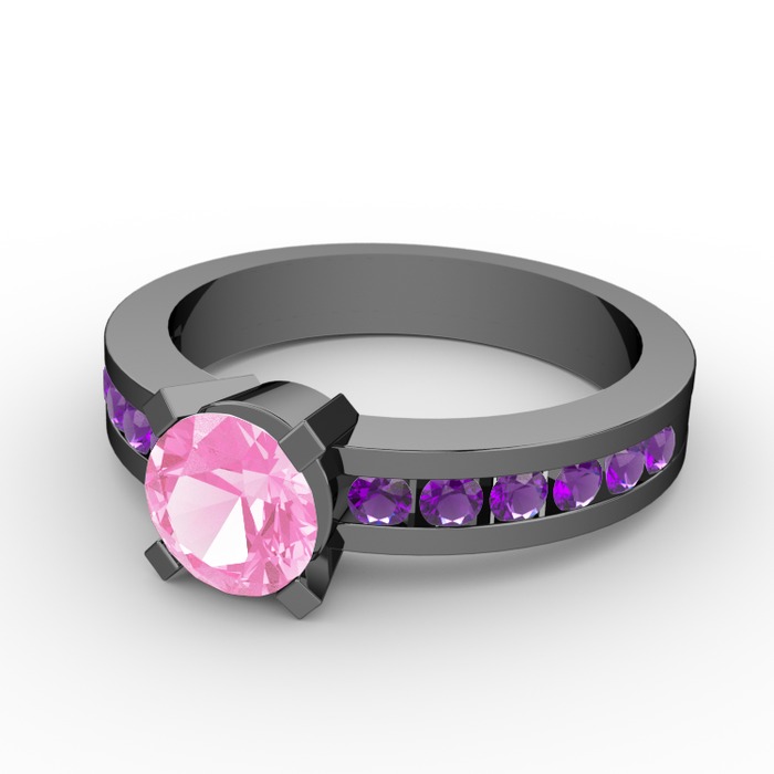Pembe kuvars ve ametist 925 ayar siyah rodyum kaplama gümüş yüzük