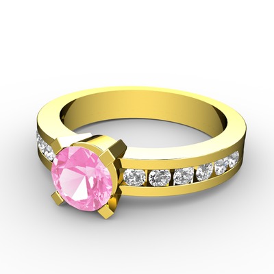 Pembe kuvars ve beyaz zirkon 925 ayar altın kaplama gümüş yüzük