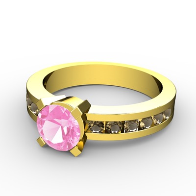 Pembe kuvars ve dumanlı kuvars 18 ayar altın yüzük