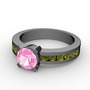 Pembe kuvars ve peridot 925 ayar siyah rodyum kaplama gümüş yüzük