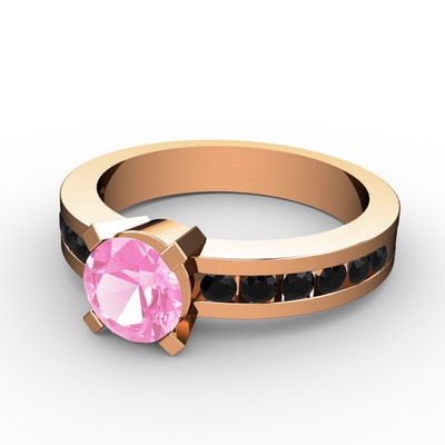Pembe kuvars ve siyah zirkon 925 ayar rose altın kaplama gümüş yüzük