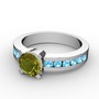 Peridot ve akuamarin 8 ayar beyaz altın yüzük