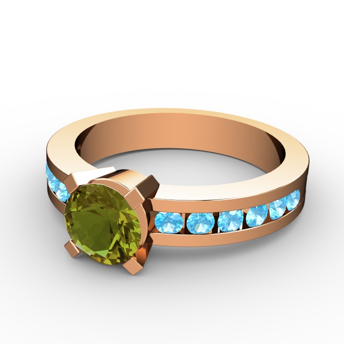 Peridot ve akuamarin 8 ayar rose altın yüzük