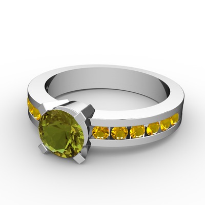 Peridot ve sitrin 18 ayar beyaz altın yüzük