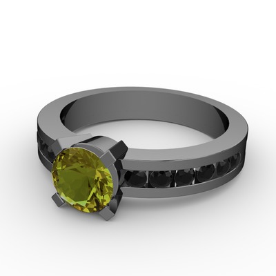Peridot ve siyah zirkon 925 ayar siyah rodyum kaplama gümüş yüzük