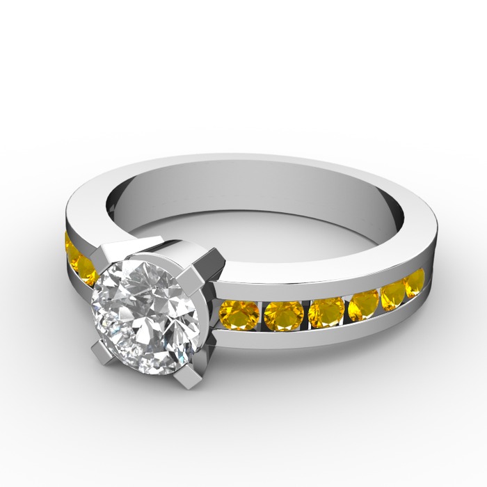 Pırlanta ve sitrin 8 ayar beyaz altın yüzük (0.92 karat)