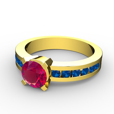 Rodolit garnet ve lab safir 925 ayar altın kaplama gümüş yüzük