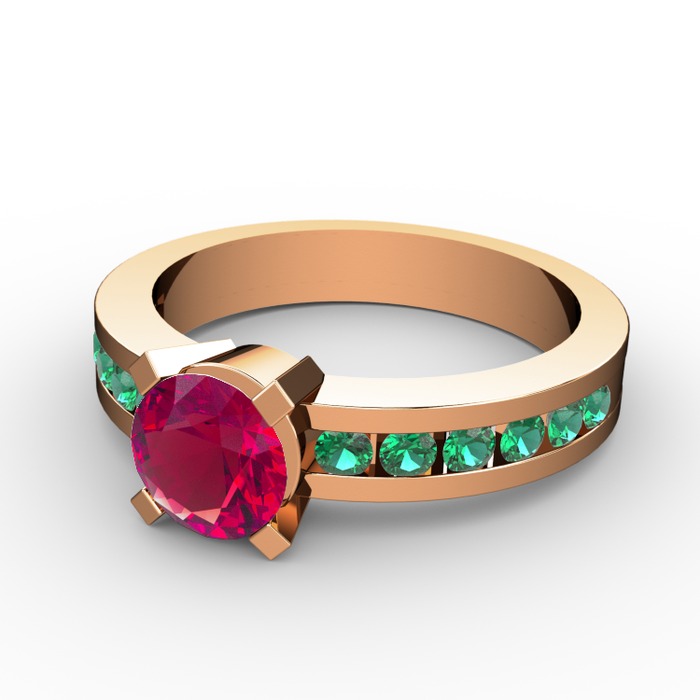 Rodolit garnet ve yeşil kuvars 18 ayar rose altın yüzük