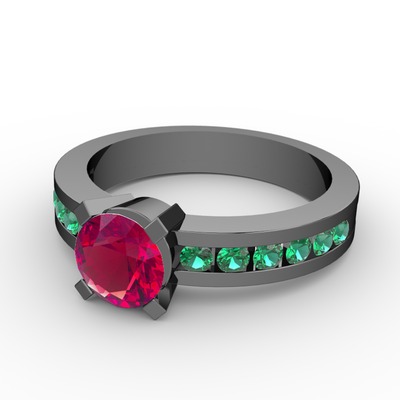 Rodolit garnet ve yeşil kuvars 925 ayar siyah rodyum kaplama gümüş yüzük