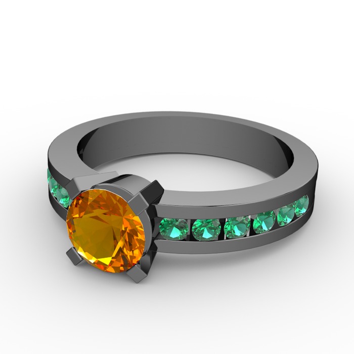 Sitrin ve yeşil kuvars 925 ayar siyah rodyum kaplama gümüş yüzük
