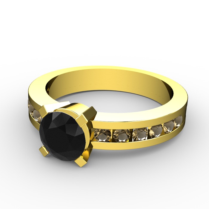 Siyah zirkon ve dumanlı kuvars 8 ayar altın yüzük