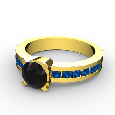 Siyah zirkon ve lab safir 14 ayar altın yüzük
