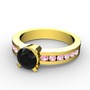 Siyah zirkon ve pembe kuvars 18 ayar altın yüzük