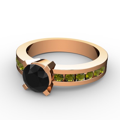 Siyah zirkon ve peridot 14 ayar rose altın yüzük