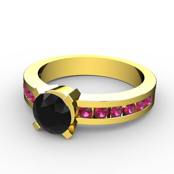 Siyah zirkon ve rodolit garnet 14 ayar altın yüzük