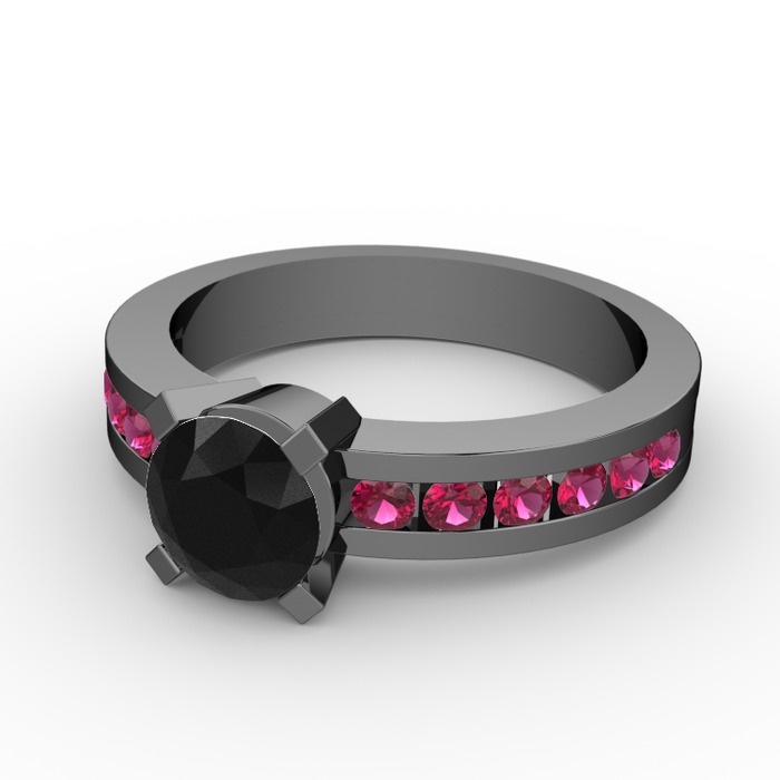 Siyah zirkon ve rodolit garnet 925 ayar siyah rodyum kaplama gümüş yüzük