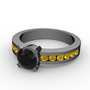 Siyah zirkon ve sitrin 925 ayar siyah rodyum kaplama gümüş yüzük