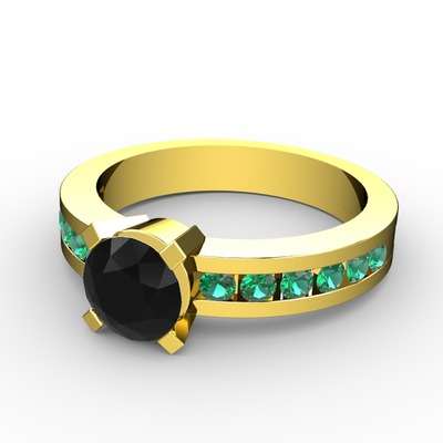 Siyah zirkon ve yeşil kuvars 925 ayar altın kaplama gümüş yüzük