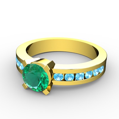 Yeşil kuvars ve akuamarin 8 ayar altın yüzük